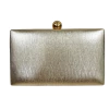 Material: tecido sintético metalizado, forro interno em tecido, detalhes de metal na lateral e botão.