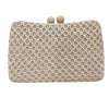 Clutch retangular de tecido tipo croche com botão de acrílico texturizado.