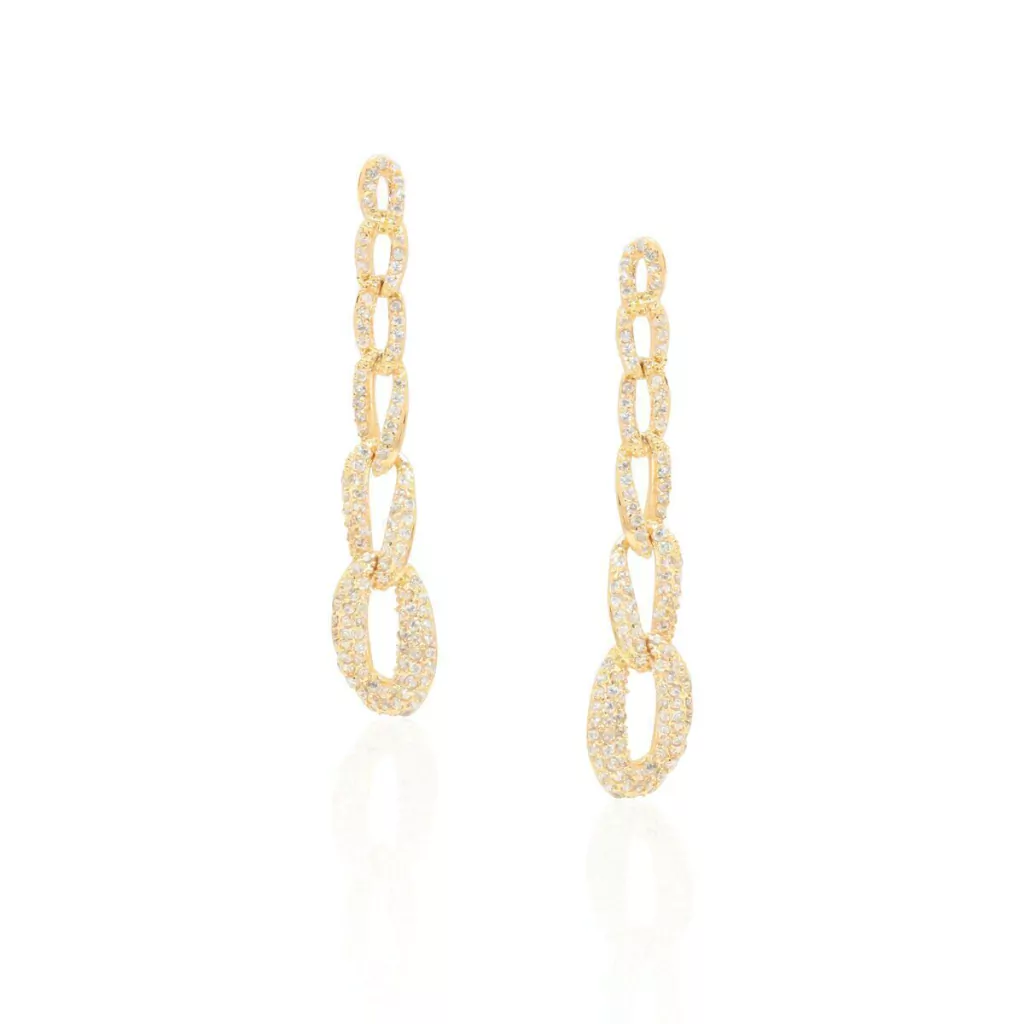Brinco semijóia, banho de ouro 18k. Com zirconias cravejadas.