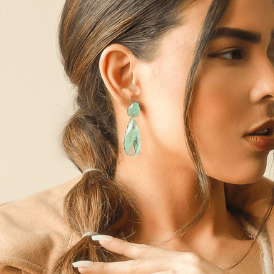 Brinco semijóia, banho de ródio branco (prata), cristal cor esmeralda colombiana (verde turquesa)