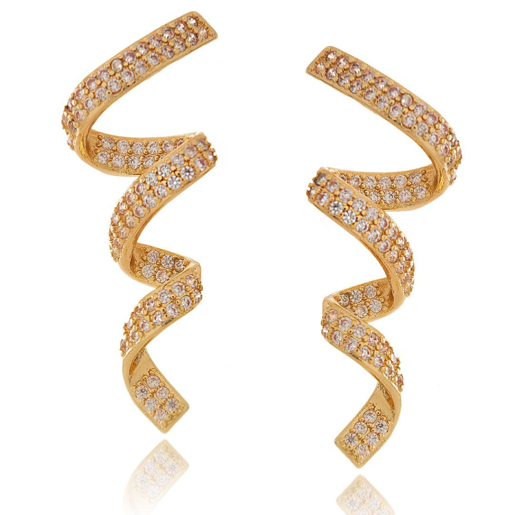 Brinco semijóia, banho no ouro 18k (3milessimos). Com zirconias cravejadas.