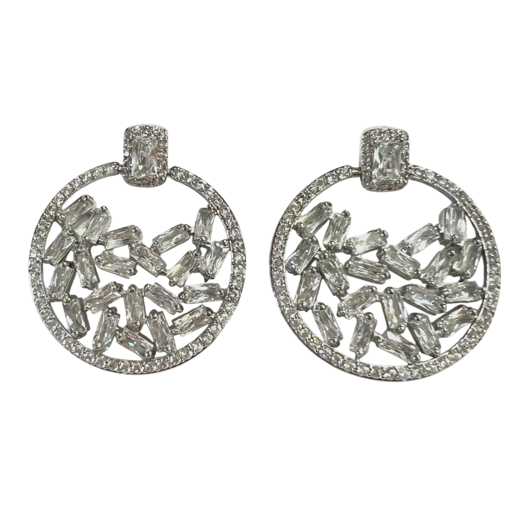 Brinco semijóia, banho no ródio branco. Com zirconias cravejadas.
